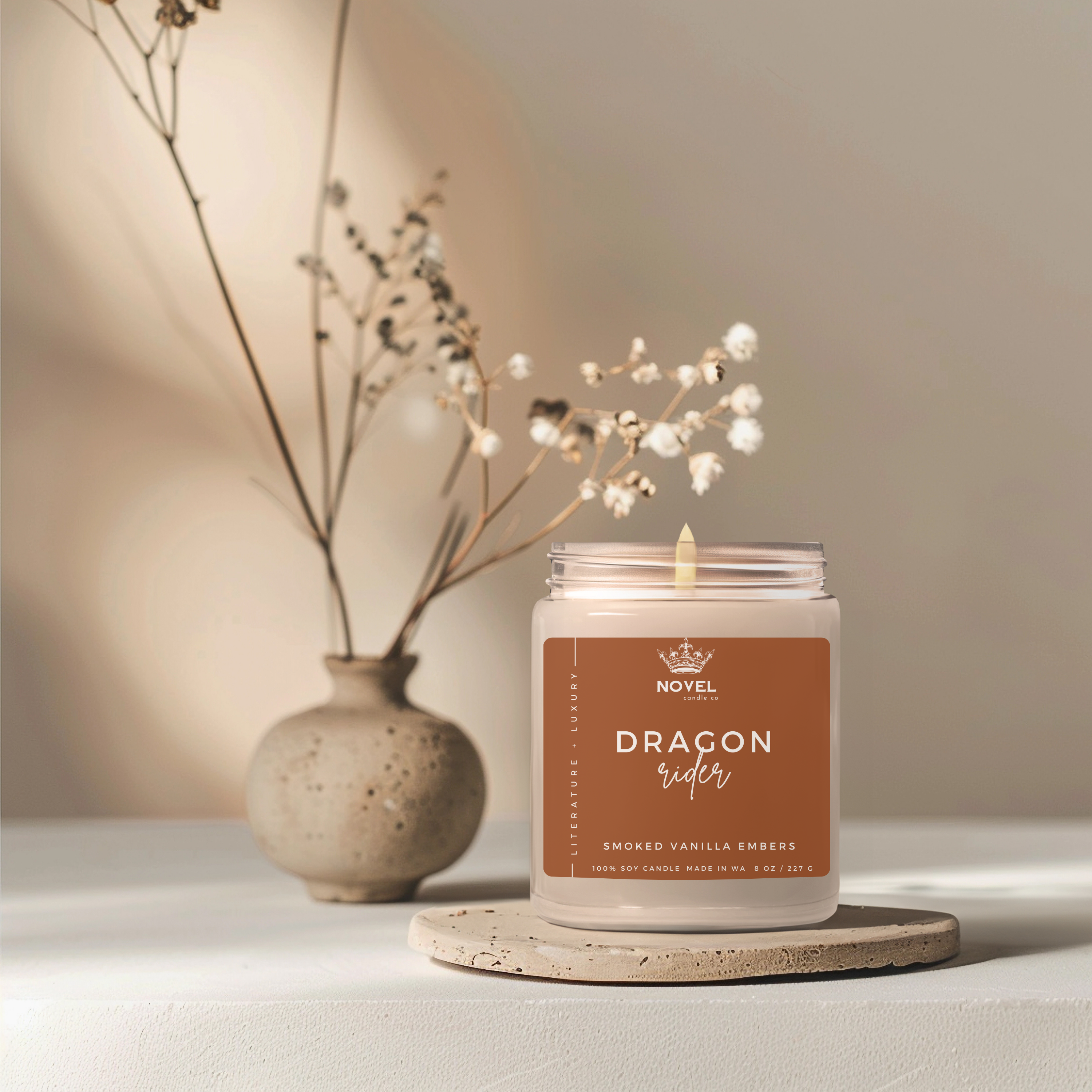 Dragon Riders Candle, 8 oz | Book Gifts, Glass Candle with Metal Lid
