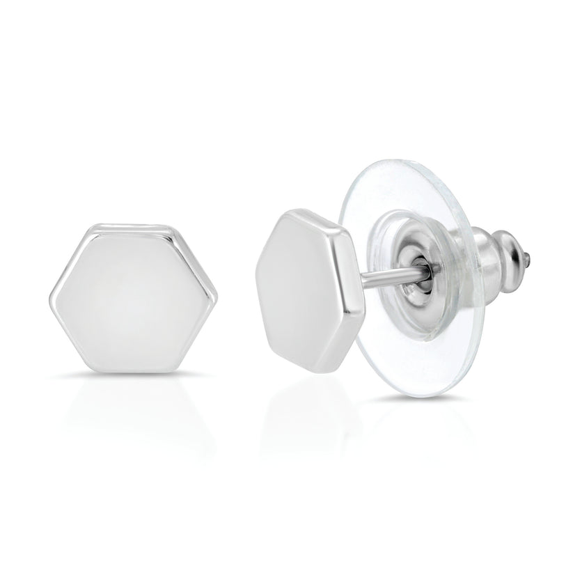 Hexagon Eternal Strength Stud Earrings, Silver