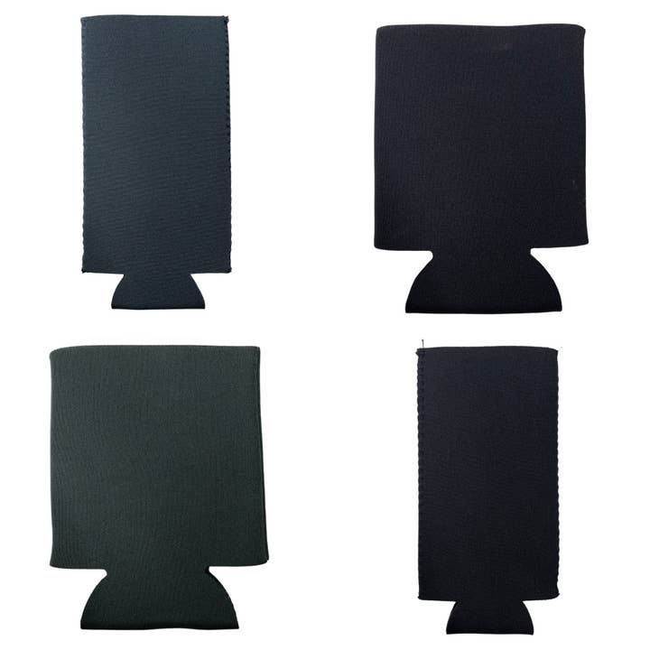 Choose between standard size koozie in dark charcoal gray or slim / seltzer size with black koozie.