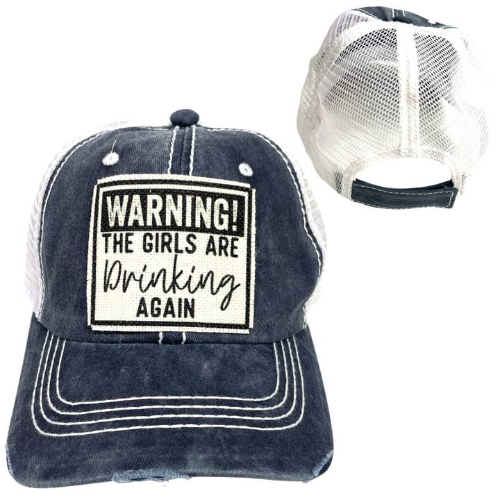 Warning Girls Are Drinking Baseball Cap, Blue w/ White Mesh