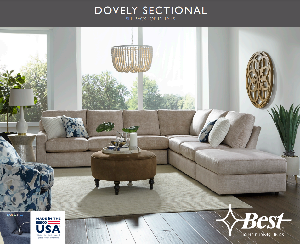 Our favorite comfy, curl-up sectional - so good we put it in our own homes! The Dovely Sectional is a transitionally styled sectional group, featuring loose back cushions and reversible seat cushions. Large track styled arms provide a modern feel, while the generous size of the Dovely sectional and premium cushioning provide the ultimate in comfort.