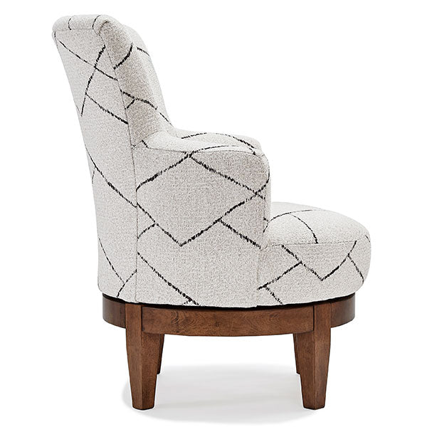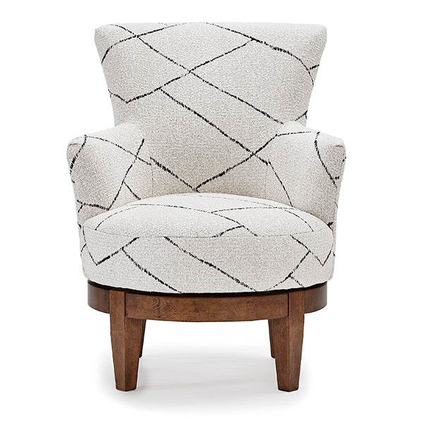 This regal 360-degree swivel chair will command the attention of any room. With a high back and flared ends, this chair evokes a prestigious air that cannot be ignored. Dare we say, this is the updated version of the wing-backed chair? (If you like this, we also recommend checking out the Attica - similar style, shorter back.)