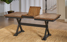 - Gathering Height Trestle Table w/ 18" Self-Storing Leaf 36W x 36H x 54-72L