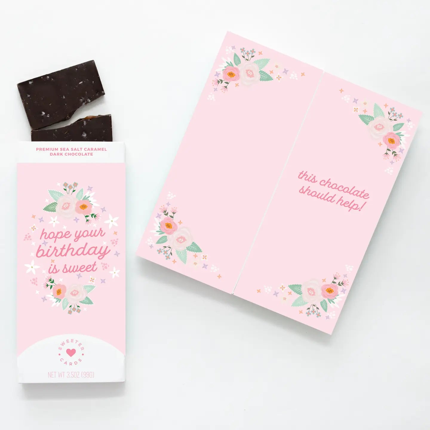 Happy Birthday Card + Sea Salt Caramel Dark Chocolate Bar | Sweeter Cards Chocolate Bar