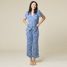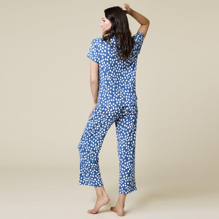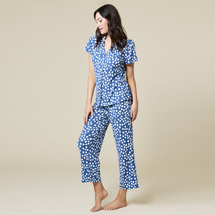 Aria-Slim Notch Collar Capri PJ Set, Blue Dots | Softies