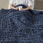 Handmade Chenille Chunky Knit Throw, Navy Blue | Madison Park