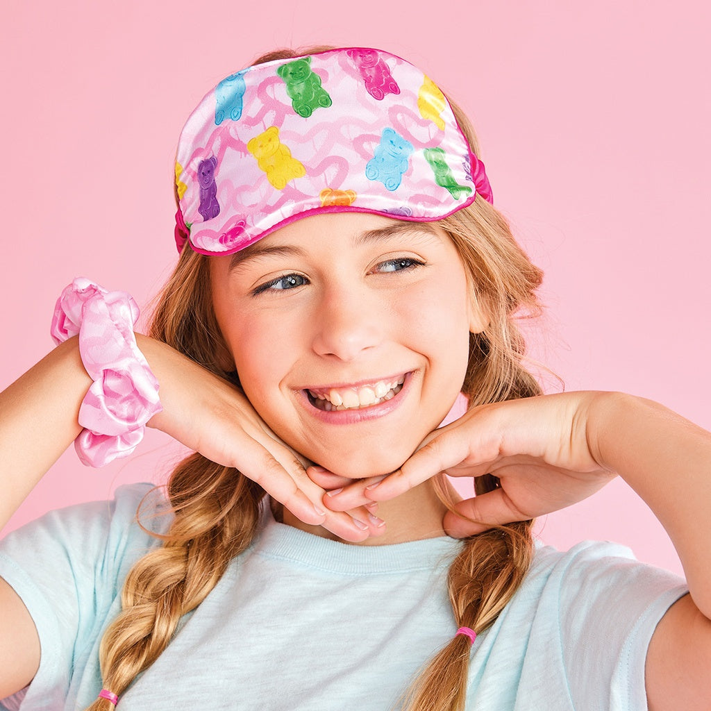 Sleep in style with this Beary Sweet Eye Mask and Scrunchie Set.