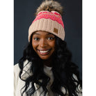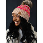 Add some playfulness to your winter wardrobe with this Blush, Pink & Orange Patterned Pom Hat from Panache Apparel Co.