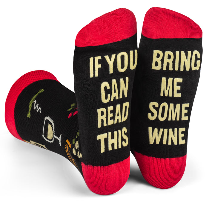 The bottom of the socks features a funny message written in non slip ink: “If You Can Read This, Bring Me Some Wine.”