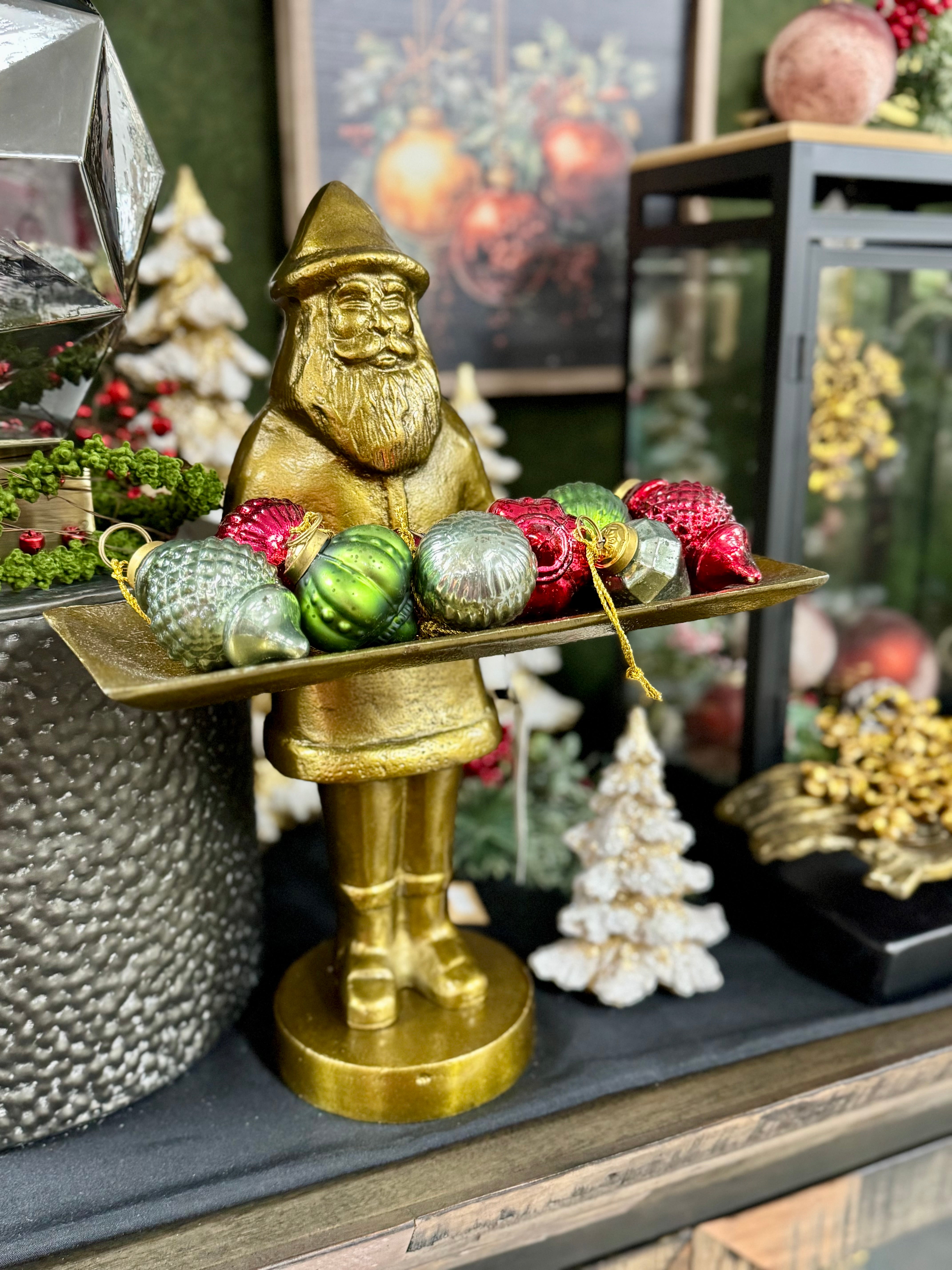 Transform your holiday décor with the Saint Nick Dish Stand, a charming cast aluminum piece that captures the magic of Christmas.