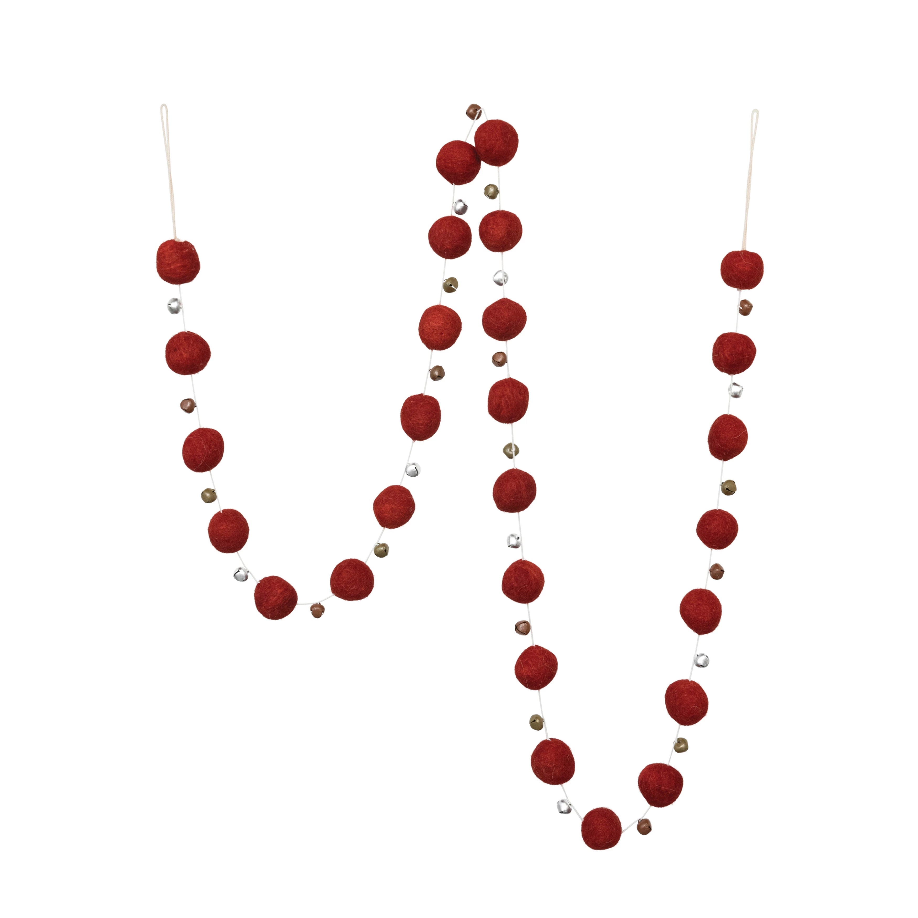 Wool Felt Ball Garland w/ Bells, Red | Holiday & Christmas Decor