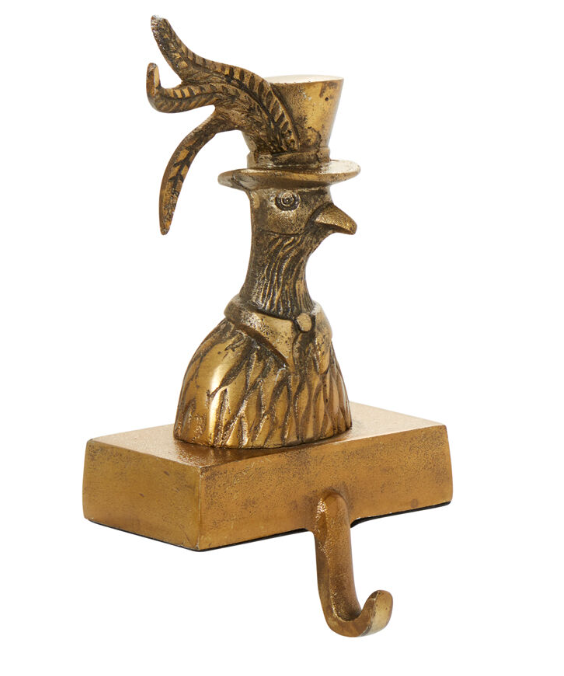 Emerson Pheasant Stocking Holder, Aluminum, Antique Gold Finish