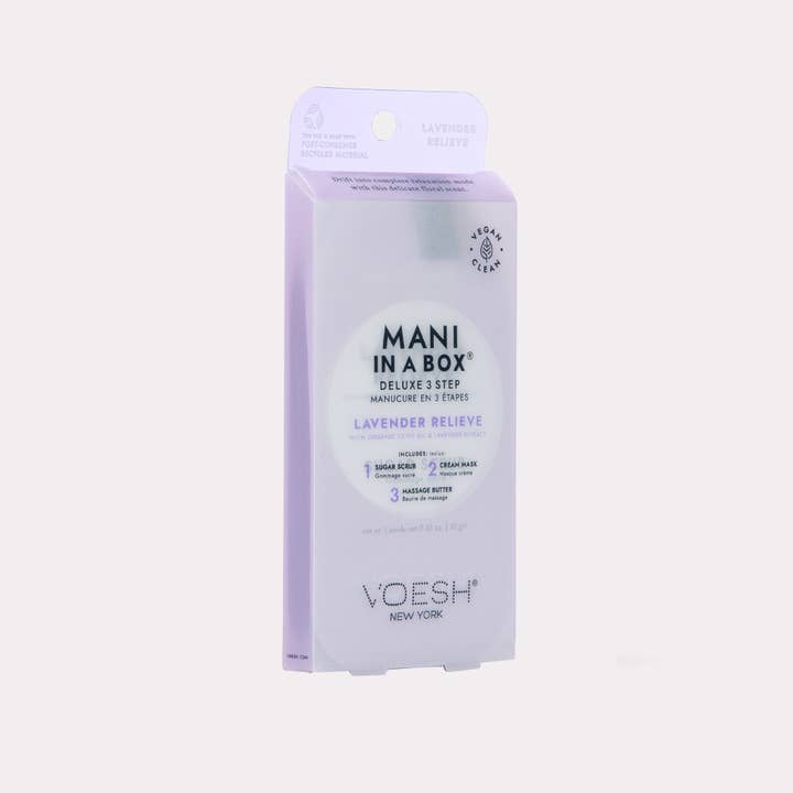 Indulge in a luxurious manicure experience with Mani in a Box, Lavender Relieve by Voesh New York.