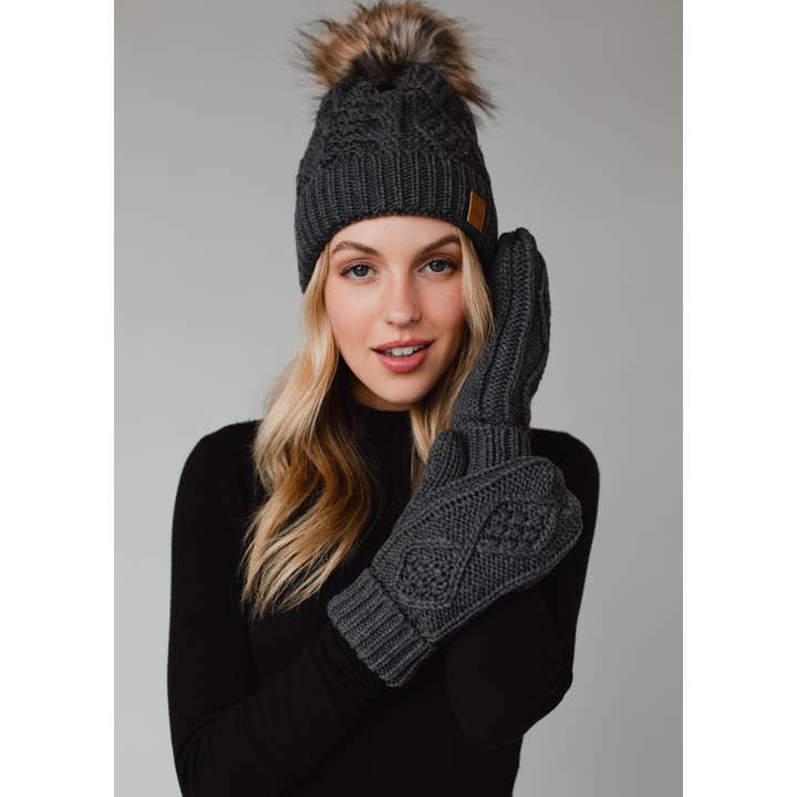 Dark Gray Cable Knit Mittens | Panache Apparel Co.