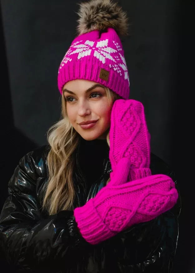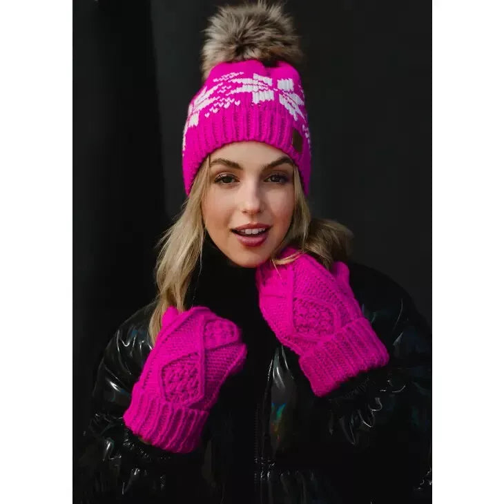 Stay warm and stylish this season with these Pink Cable Knit Mittens from Panache Apparel Co.