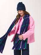 Featuring a bold plaid pattern in cheerful colorways, this oversized scarf is the perfect combo of statement and snug.