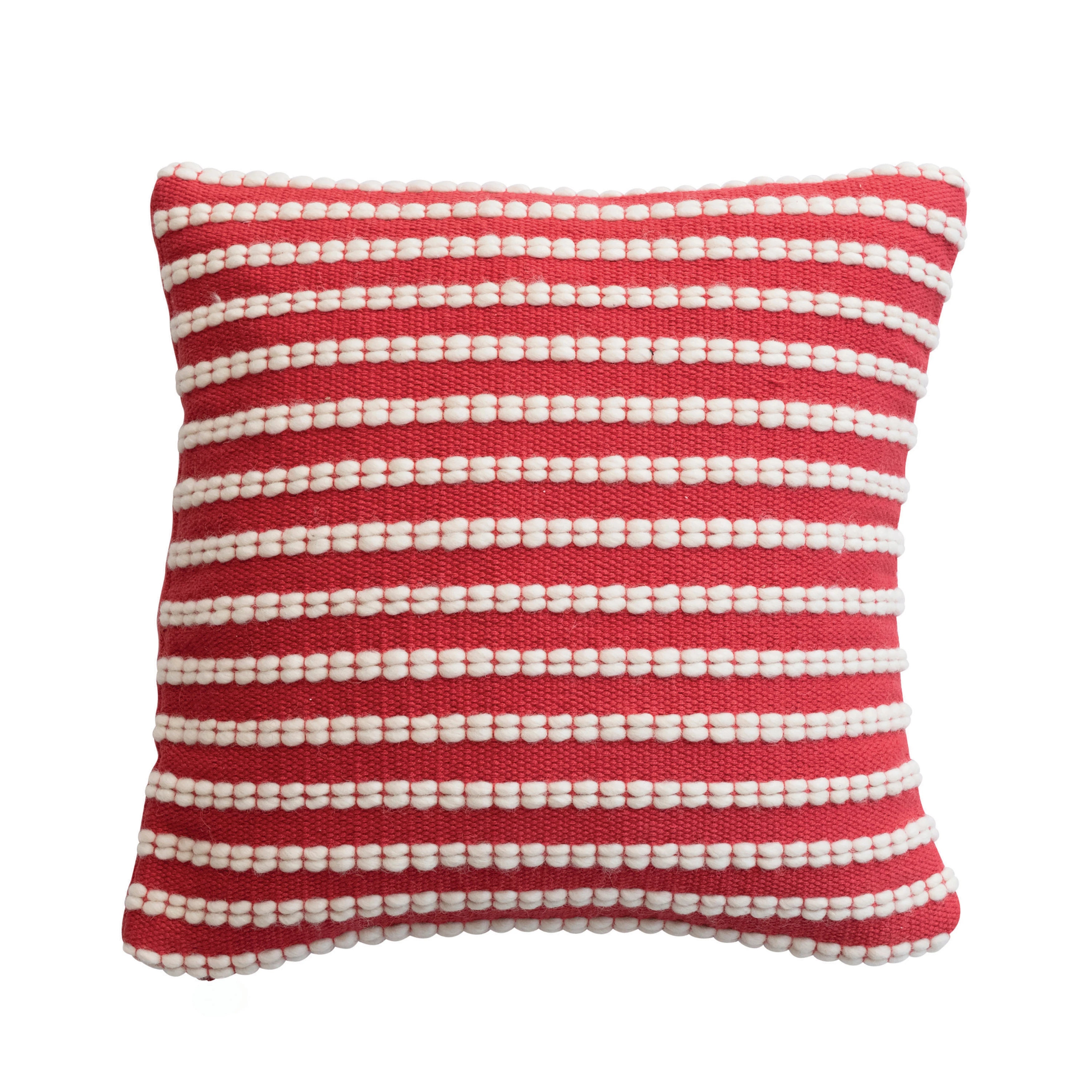 Elevate your home decor game with this Red Square Pillow featuring White Wool Stitching.