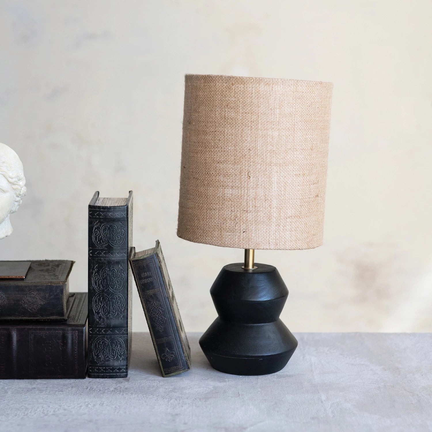 Black Mango Wood Table Lamp w/ Jute Shade | Creative Co-Op