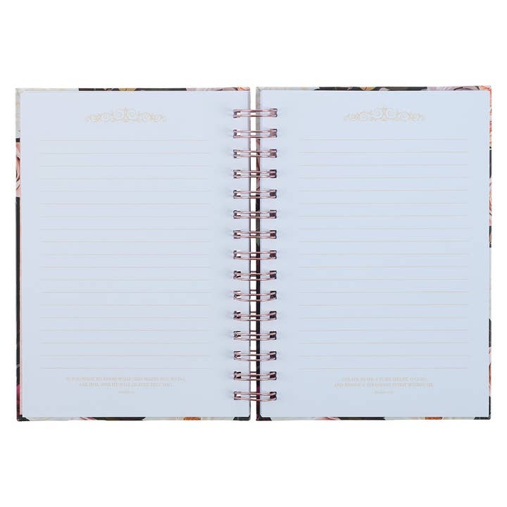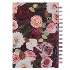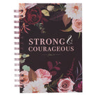 Delicate fall-colored flowers support the call to courage on the Strong and Courageous Merlot Bouquet Large Wirebound Journal's cover.