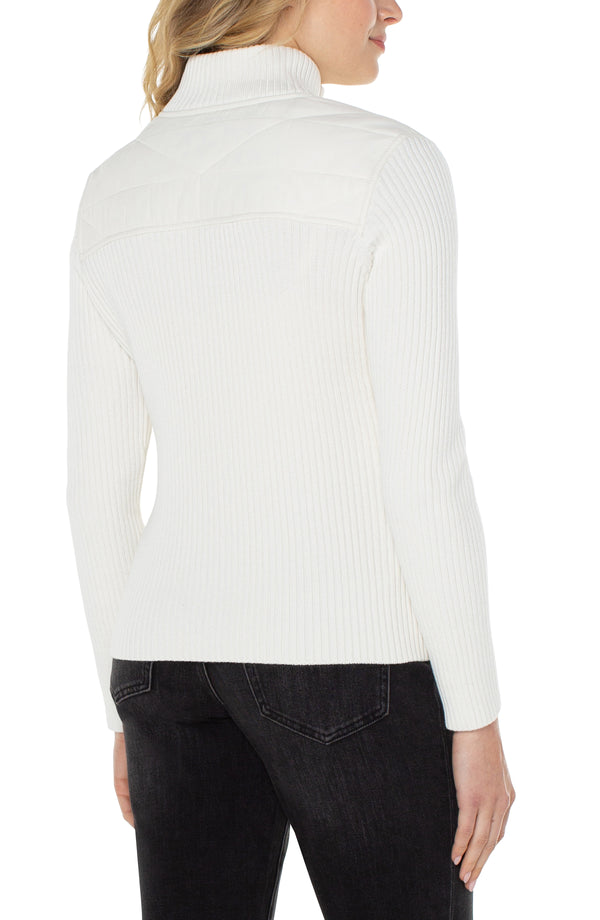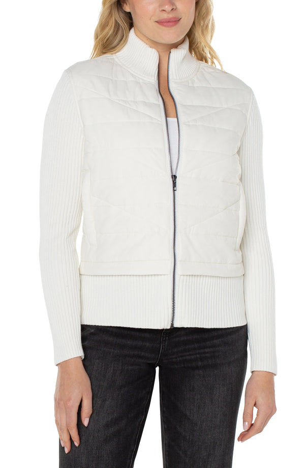 Long Sleeve Quilted Front Full Zip Hooded Sweater, Porcelain | LIVERPOOL