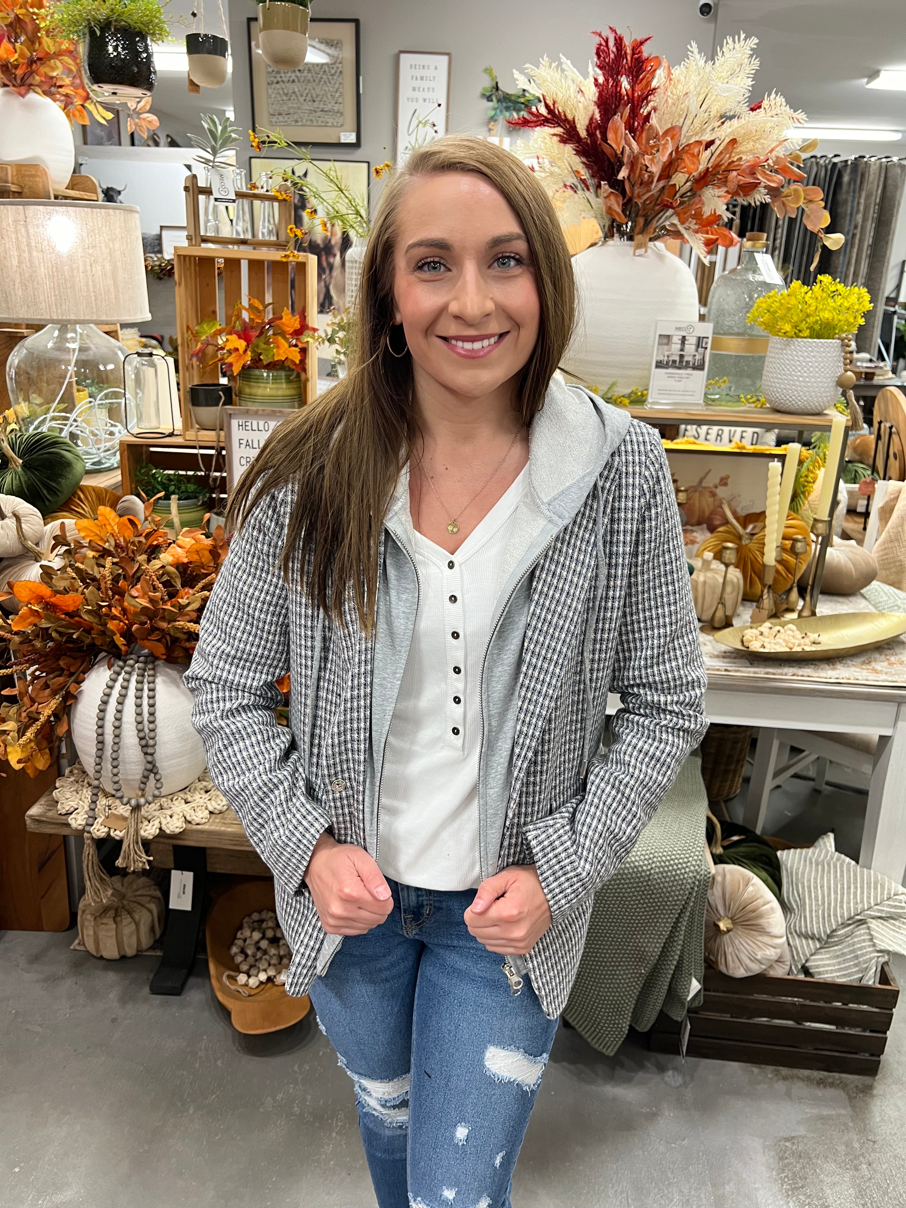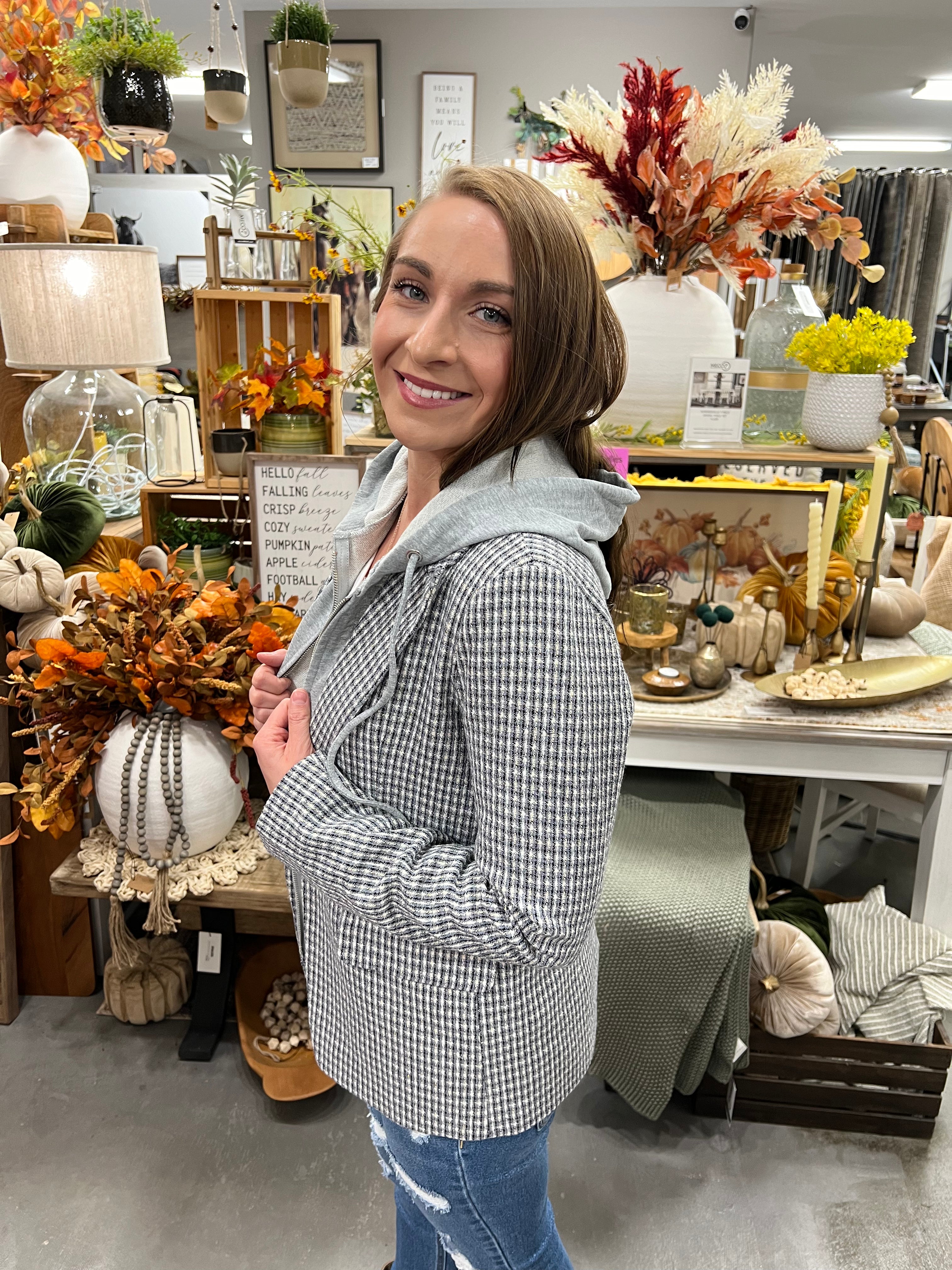 Plaid Blazer Hoodie, Grey | ELAN - SALE