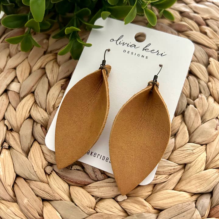 Experience effortless elegance with these Brooklyn Leather Earrings in Camel.