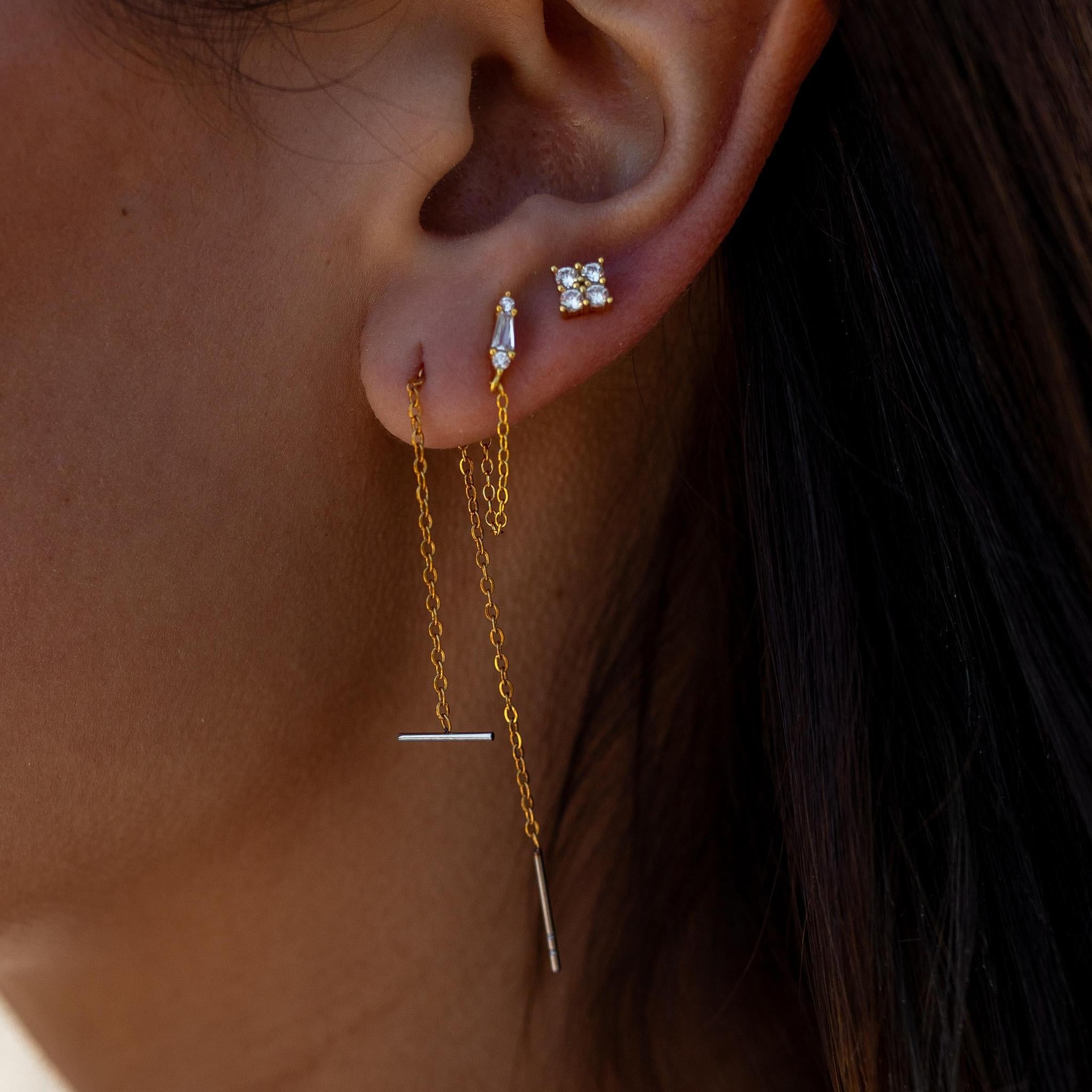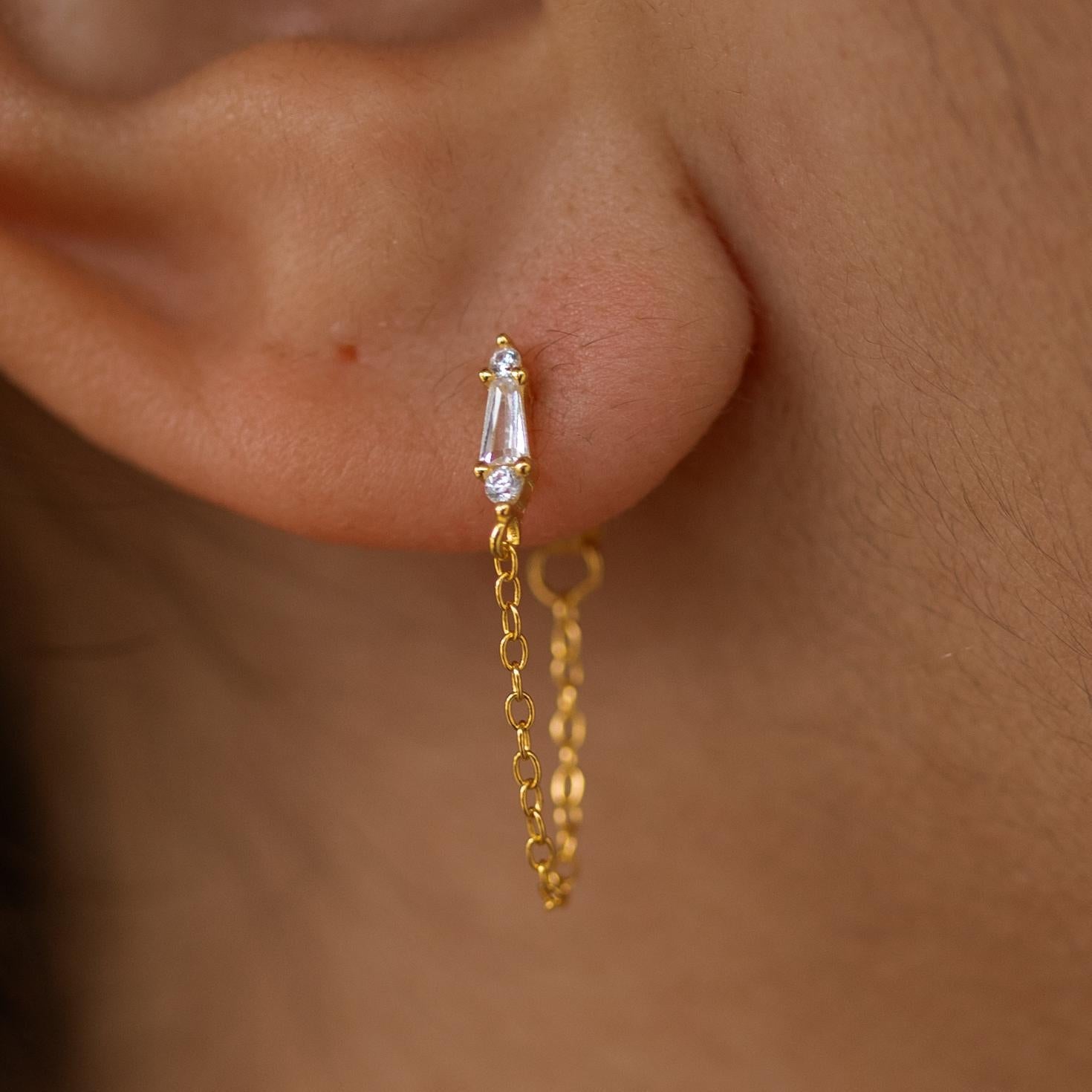 Introducing the Willow Stud - a delicate yet captivating addition to your jewelry collection. This dainty earring features a teardrop-shaped gemstone stud and a delicate chain that connects to the back of the stud, creating a subtle and enchanting movement with every step.