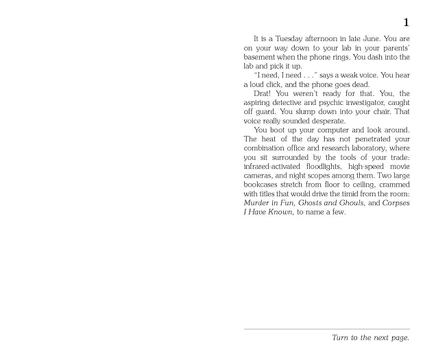 YOU are a successful young detective, and the creepy Marsden residence and its missing owner have haunted you more than any other case. Maybe this is a sign you shouldn't continue? Do you call in your best friends for support? Or perhaps you should turn to the police for help? Are you ready to take on mutant chimpanzees, time travel, and a counterfeiting ring to solve the case? Be careful, the choices YOU make might end in glory, disaster, or certain death.