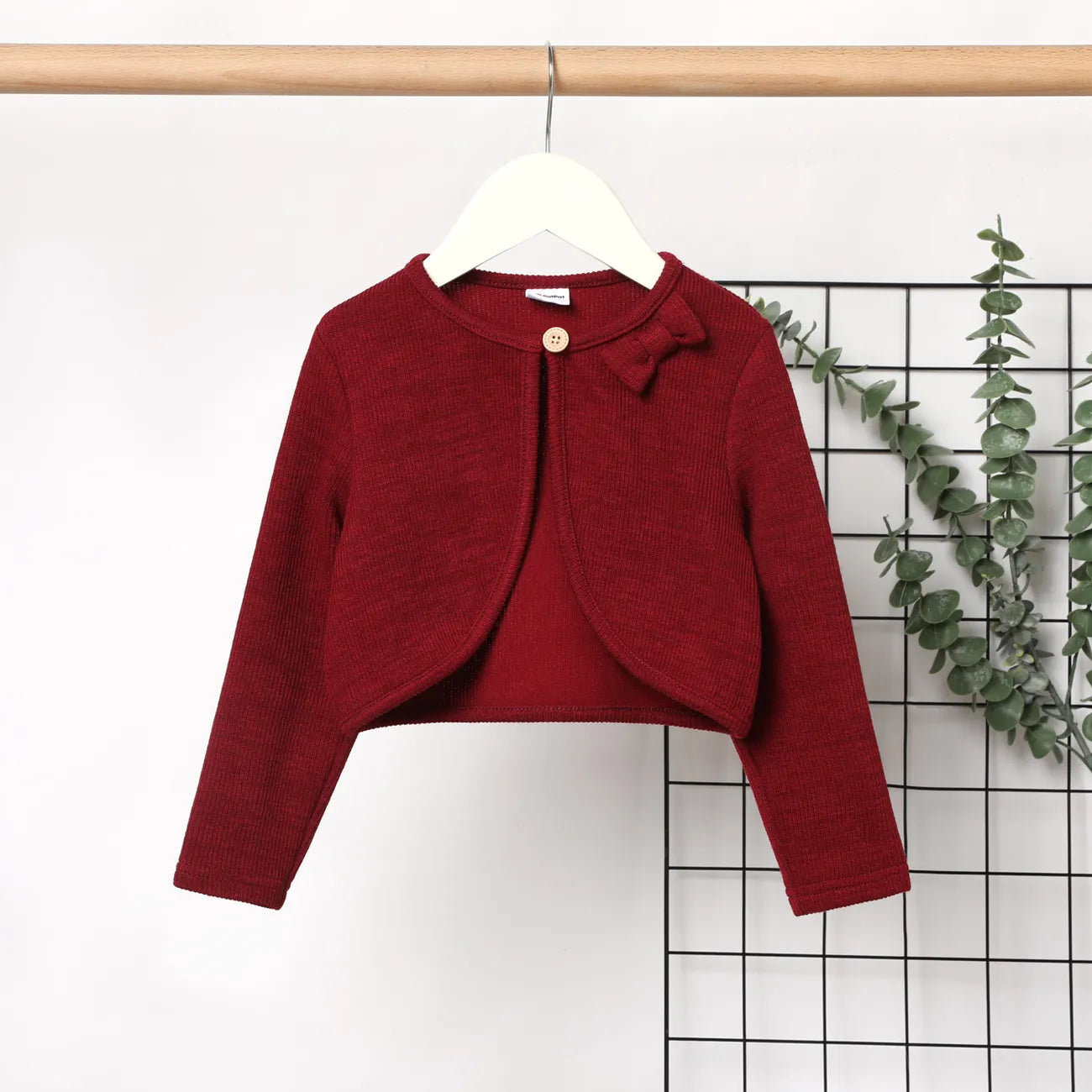 Discover this sweet and stylish Bowknot Ribbed cardigan from PatPat with unique Hyper-Tactile 3D design. Available in delightful shade of red, this piece is crafted from a soft blend of polyester and spandex. Sized perfectly for toddlers in 18-24 months up to 5-6 years, their solid colors add a versatile touch to any outfit.