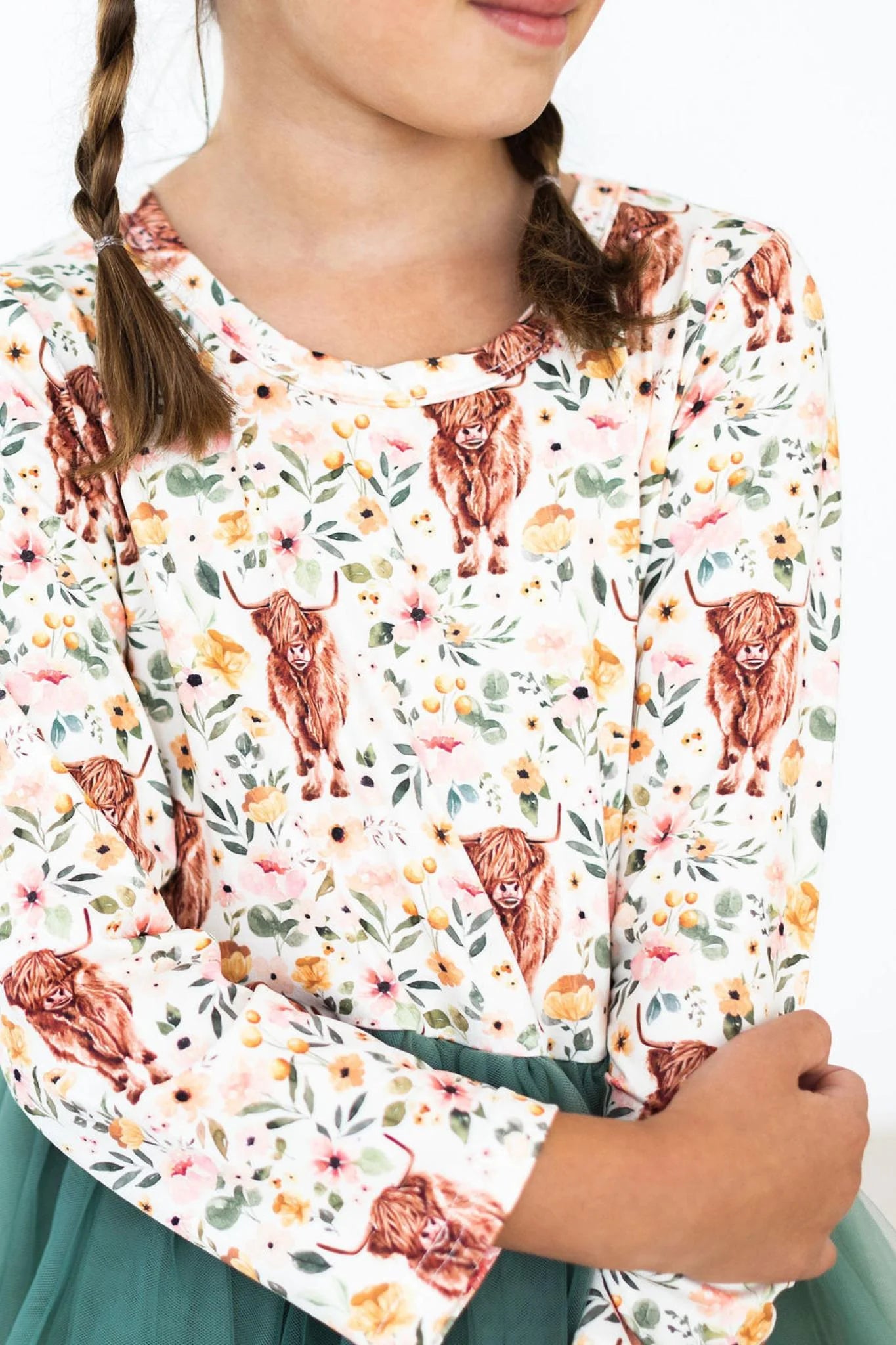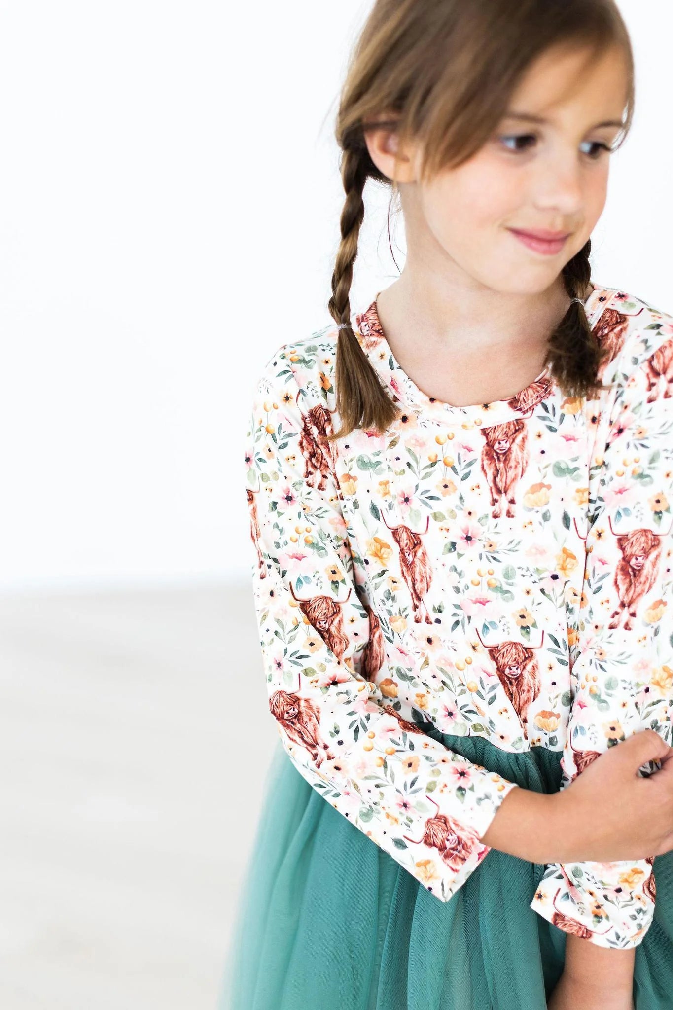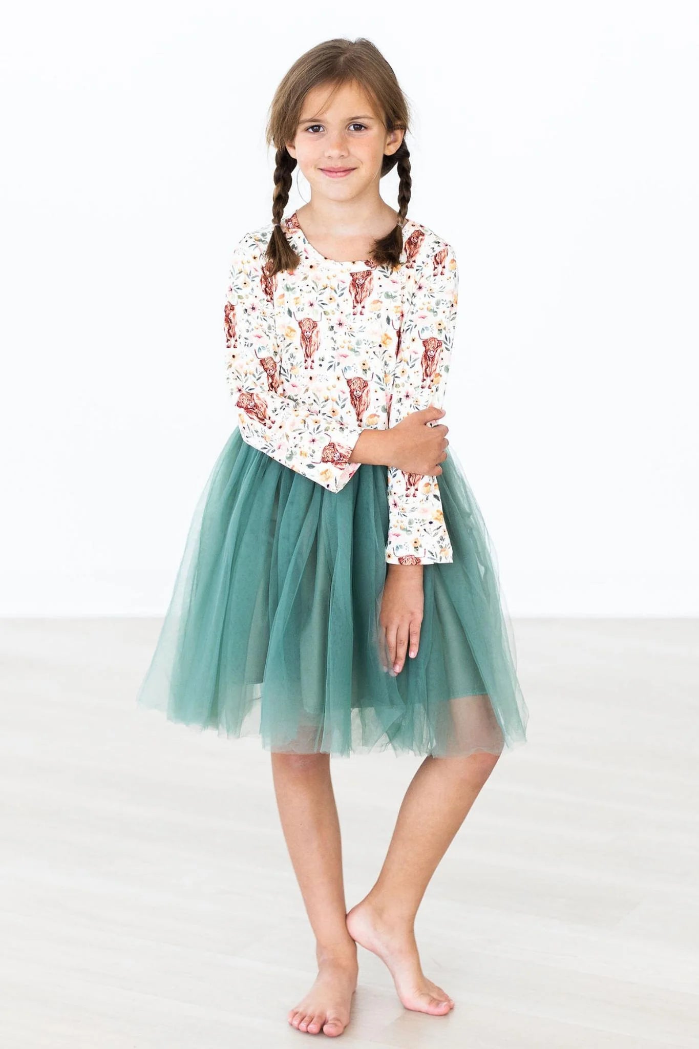 Tutu Dress, Long Sleeve Girl & Toddler Dress, Florals on the Farm - Little Girl Twirl Dresses | Mila & Rose