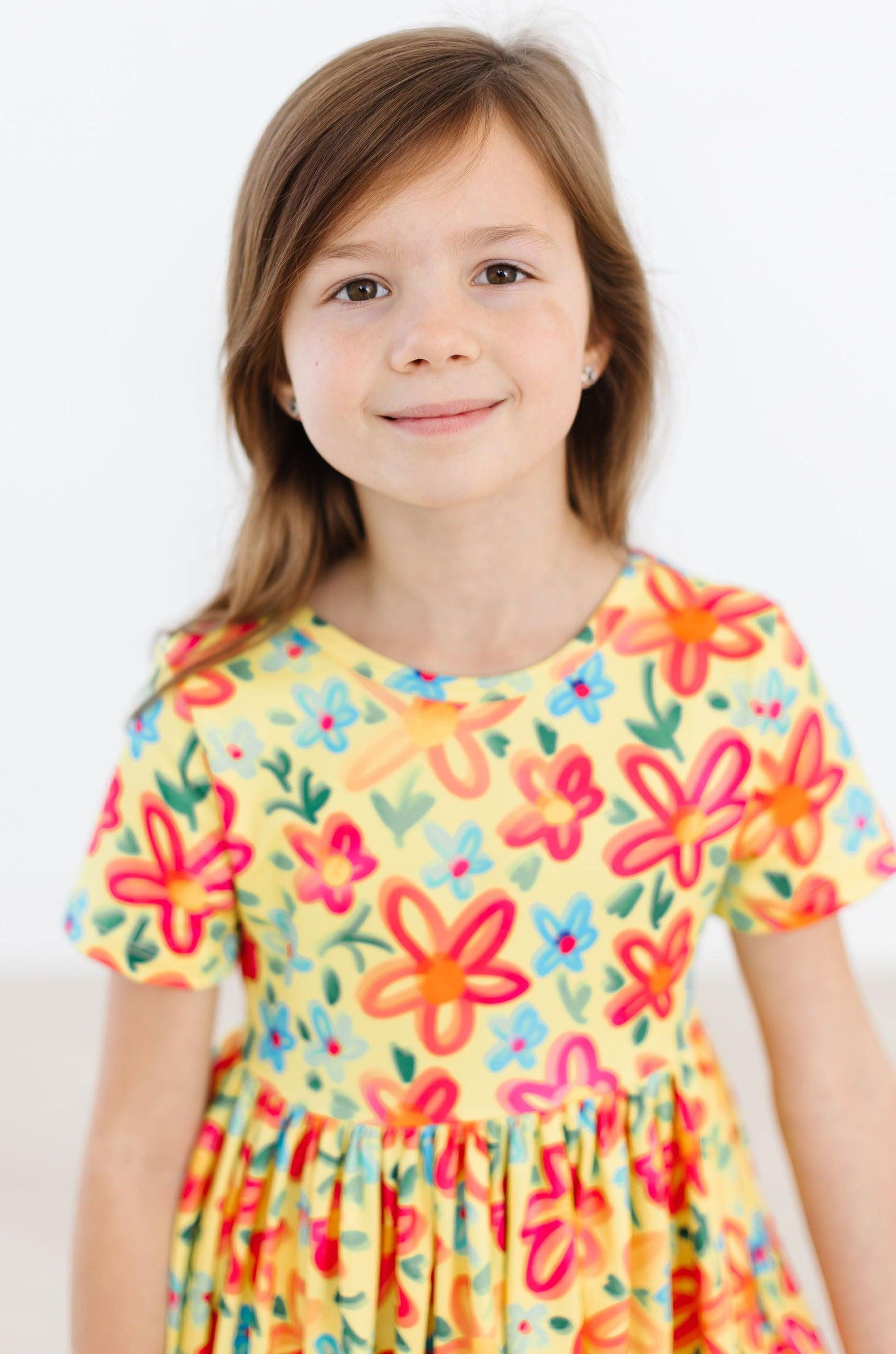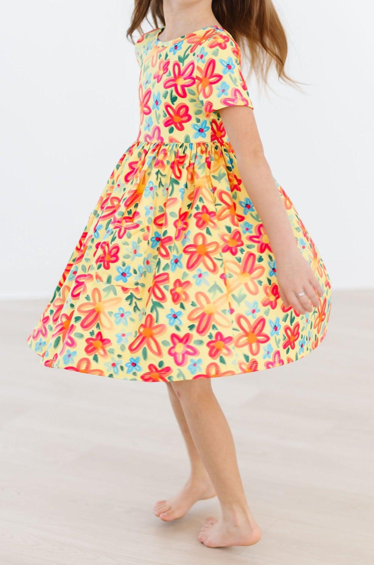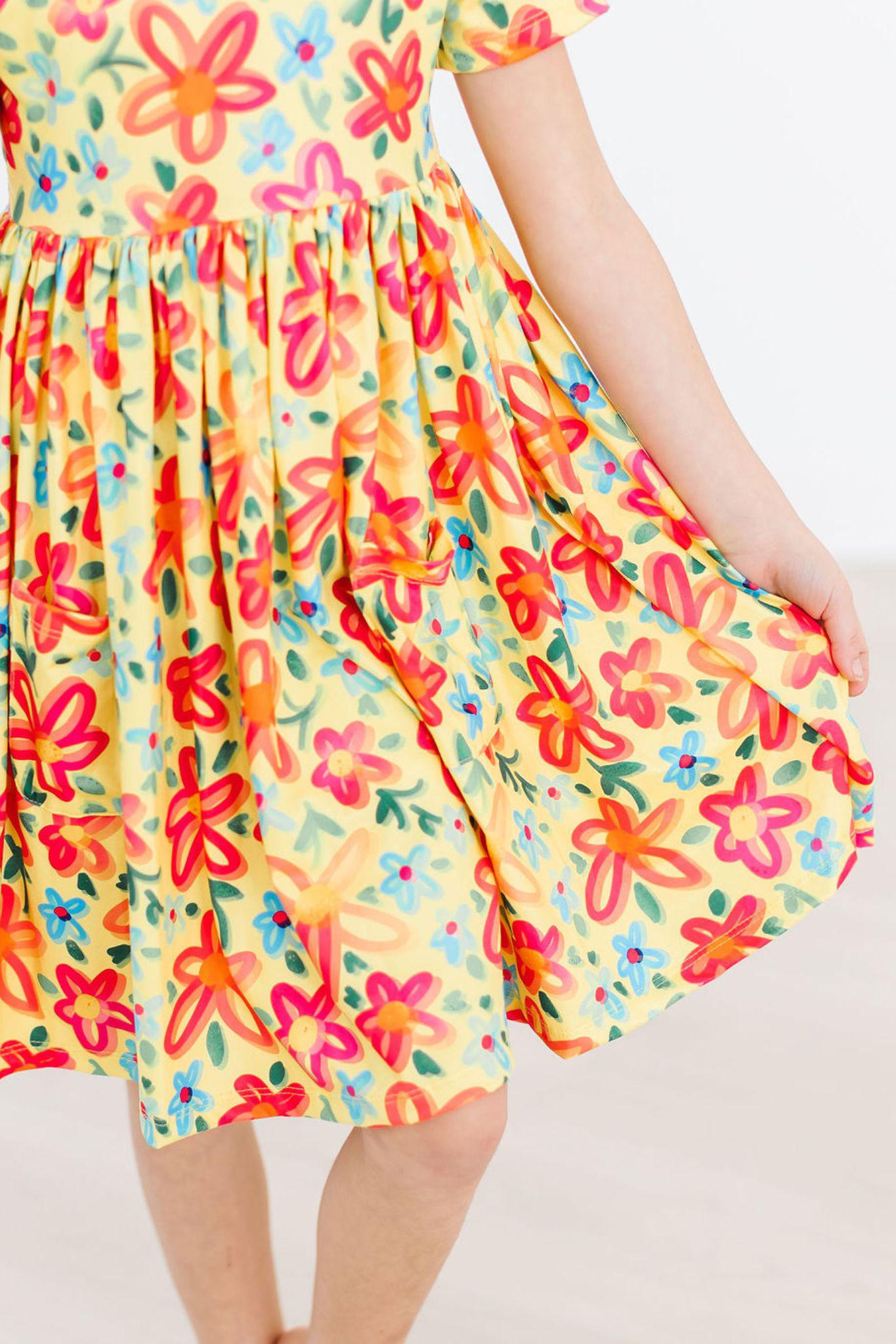 Pocket Twirl Dress, Short Sleeve - Yellow Neon Floral | Mila & Rose
