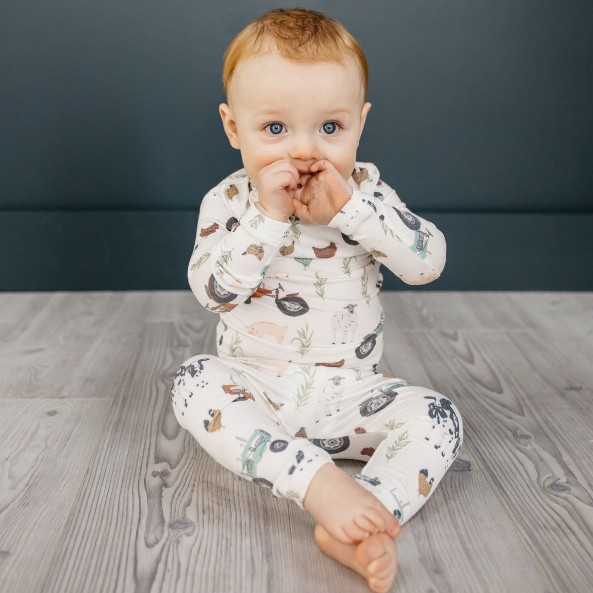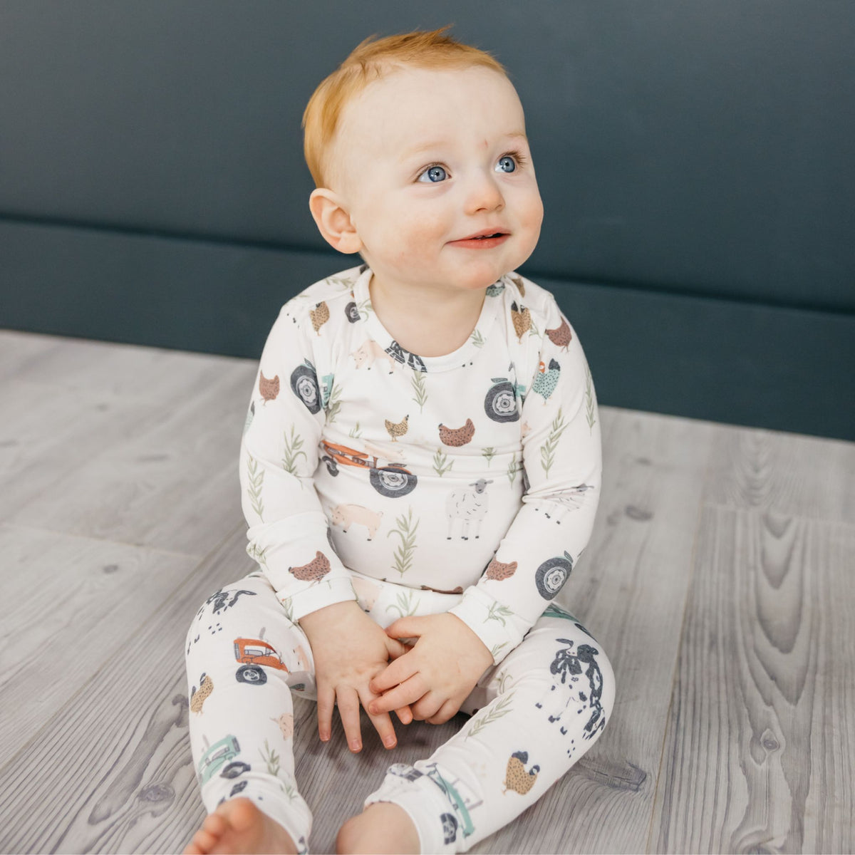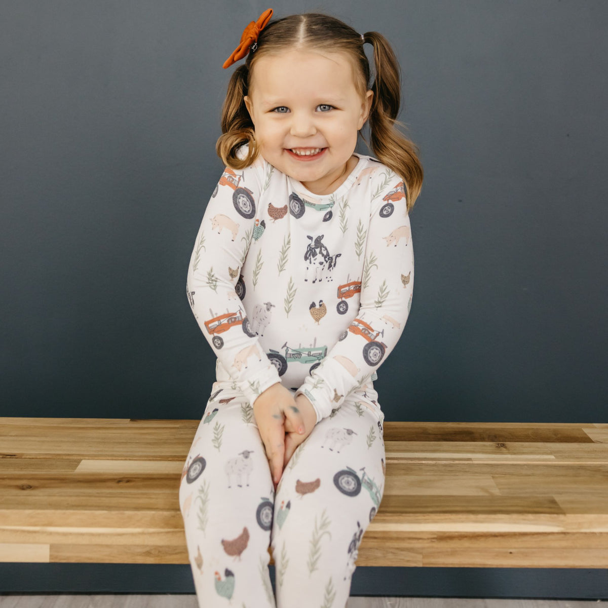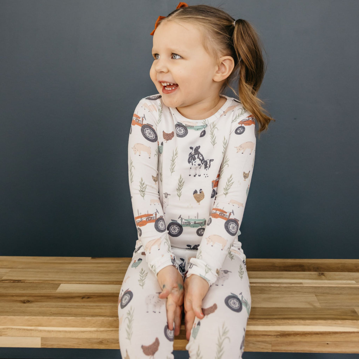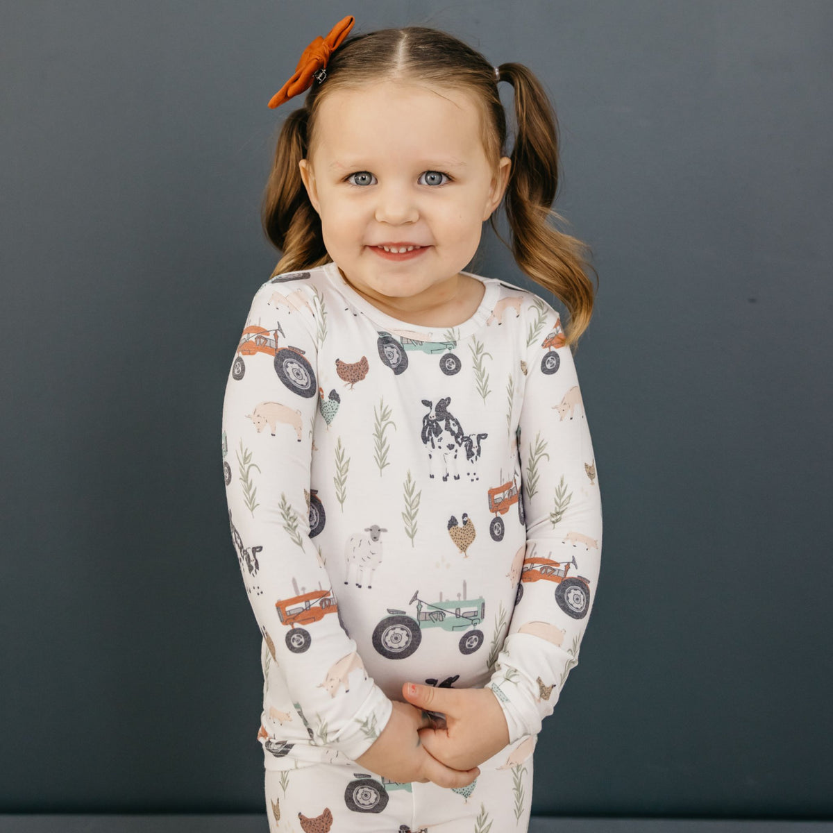 Unisex Long Sleeve Toddler Pajama Set Two Piece, Farmer Jo | Copper Pearl