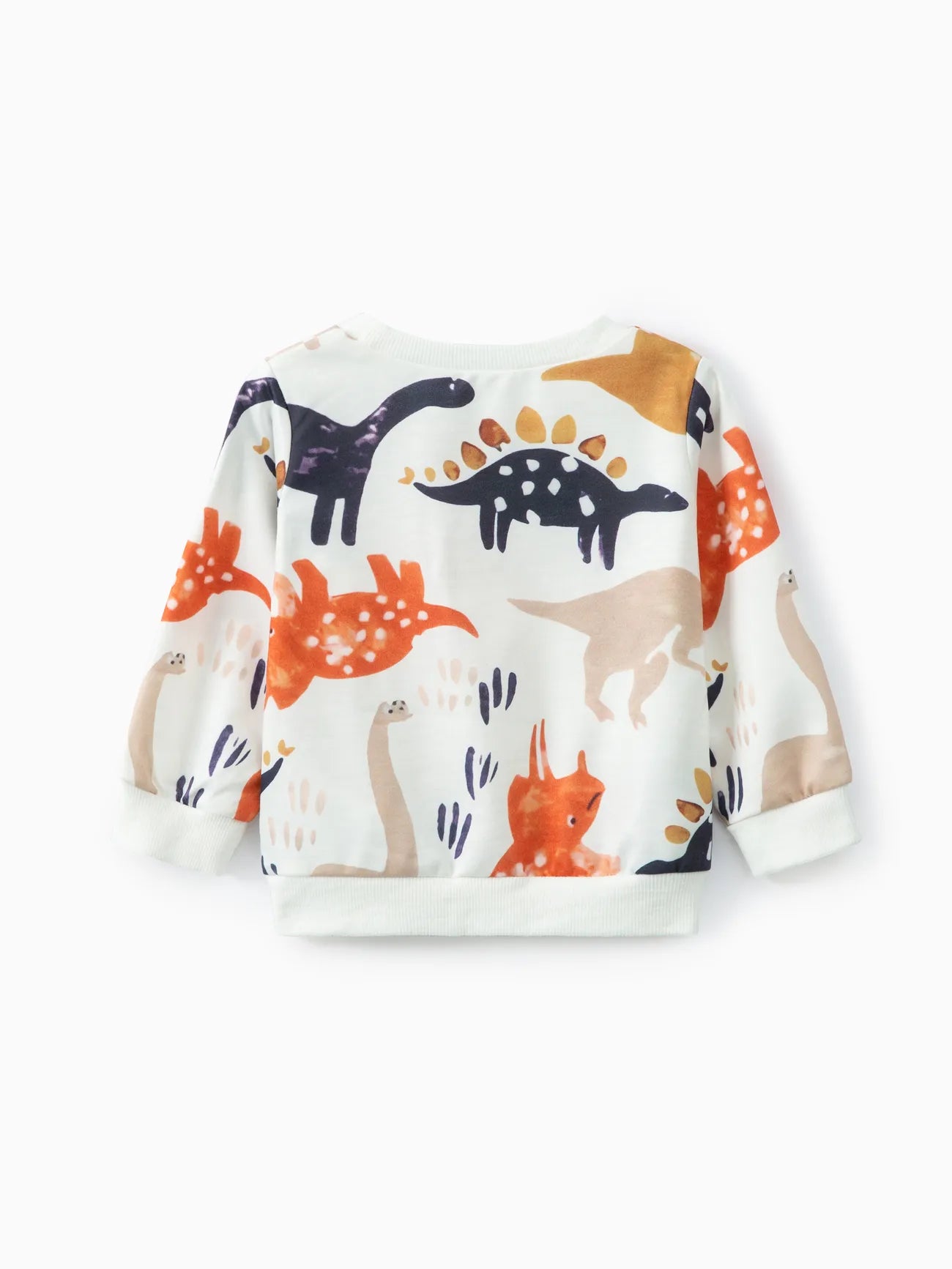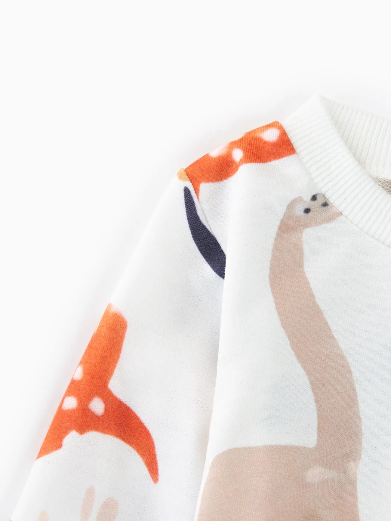 Colorful Dinosaur Print Sweatshirt, Cream | PatPat