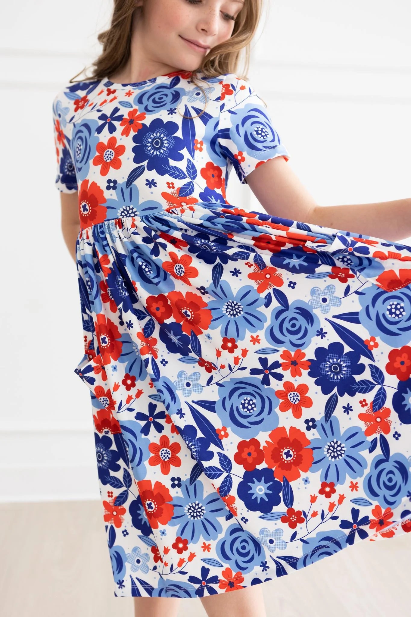 Pocket Twirl Dress, Short Sleeve - Happy 4th Floral | Mila & Rose