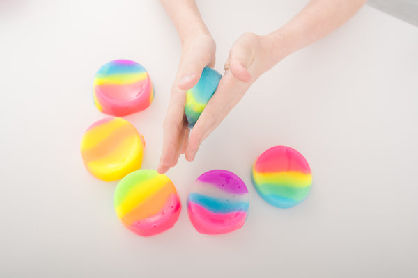 Rainbow Glow Dough is a gel-like dough that lets you stretch, squish, and de-stress with its soft, jelly-like texture. And the best part? It glows in the dark! Get ready for hours of mesmerizing, sensory play.