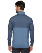 Standing mock neck collar; 1/4-length zipper from chest to chin. Tailored athletic fit.