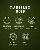 - MadeFlex Performance Technologies: Built-In Stretch; Moisture Wicking; UPF Sun Protection; All-Day Comfort; Easy Care