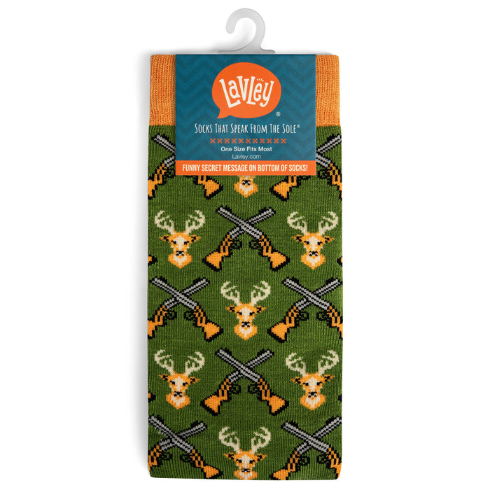 These crew-length socks make an ideal gift for men passionate about hunting, for their birthday, Christmas, or any special occasion. Whether they're hot on the tail of a trophy buck, working at the office, or simply unwinding at home, these socks will serve as a cherished reminder of your thoughtful gesture.