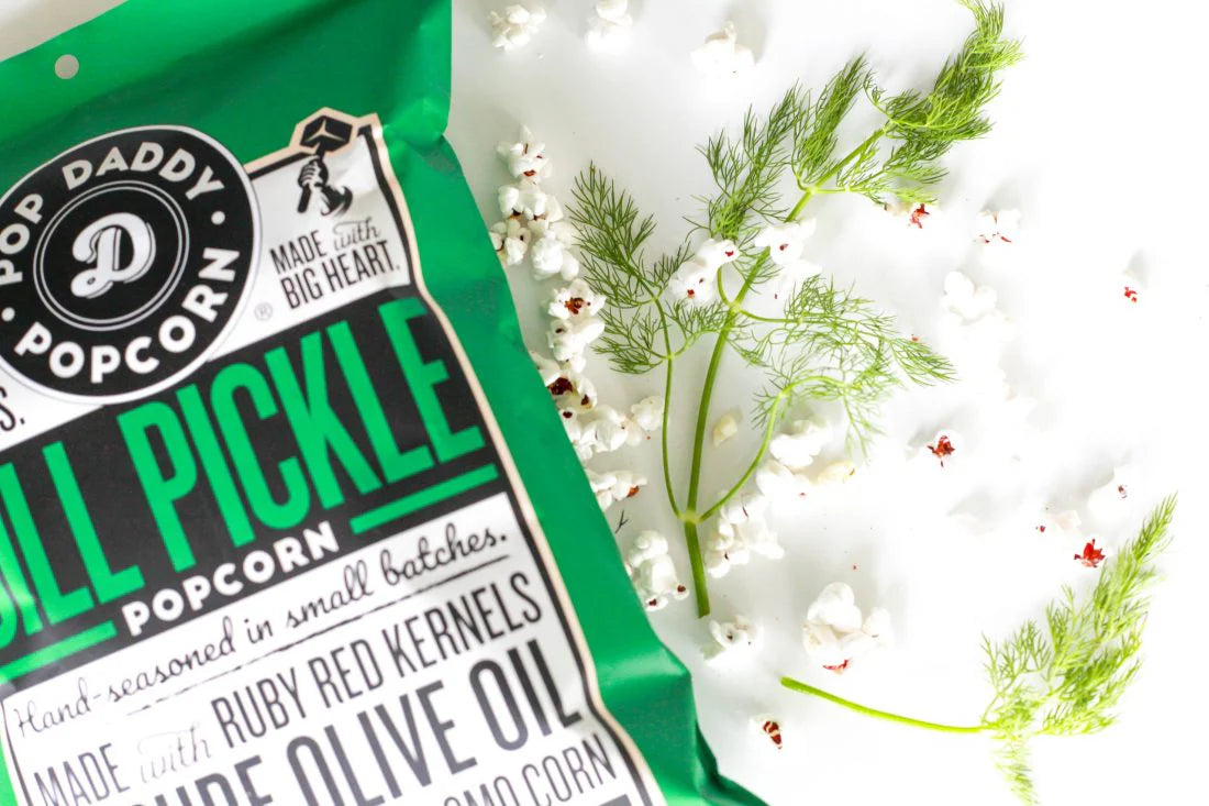 This popcorn is kind of a BIG DILL (insert dad joke belly laugh). Pop Daddy's Dill Pickle popcorn’s flavor is so powerful it wakes your tastes buds up on the first handful.