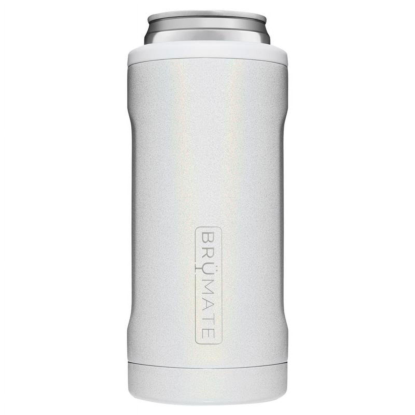 Keep your favorite 12oz slim canned beverages ice-cold until the last drop with the Brü̈Mate Hopsulator Slim Can Cooler in Glitter White.