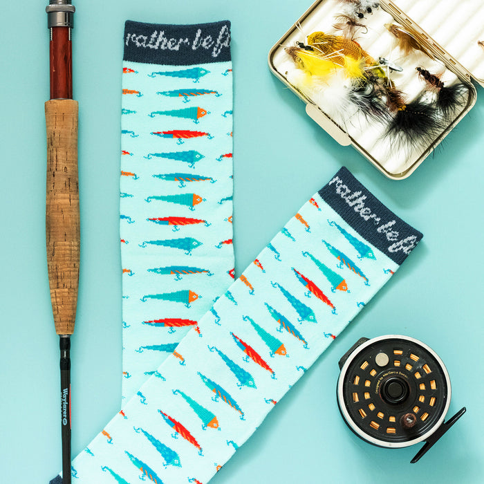 hese socks sport a funny message on the cuff: “I’d Rather be Fishing.” Made from a luxurious knit cotton that will keep your feet cool and comfortable all day long.