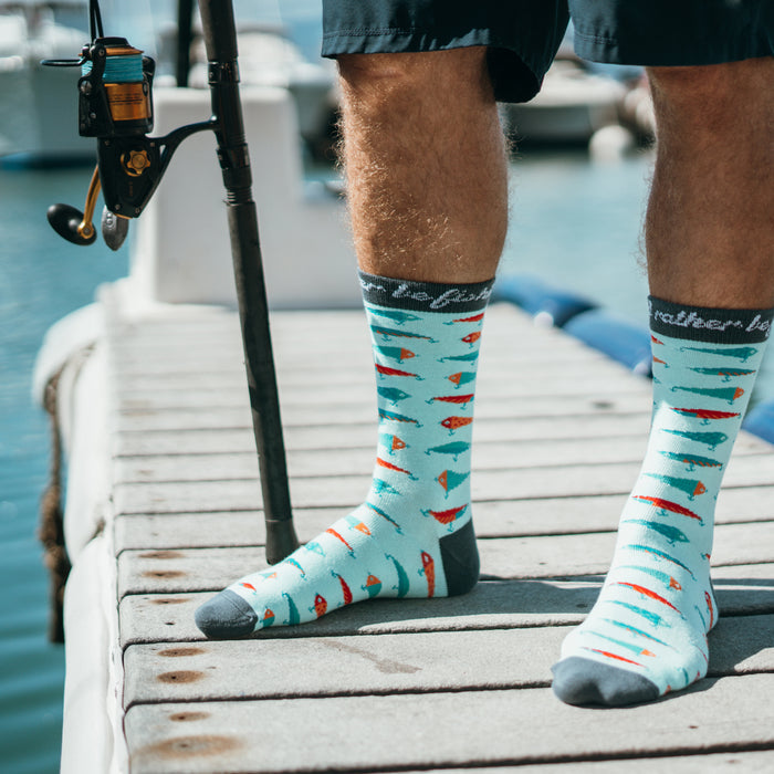 You'd rather be fishing! You don’t have to tell your boss, let your socks do the talking. The geometric fishing lures pattern blends right into the office in stylish colors that’ll have you looking sharp for any situation. T