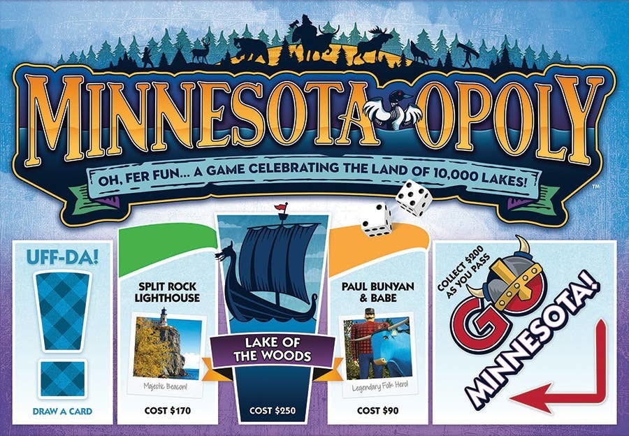 Whether you're at Lake Mille Lacs or Lake Minnewaska, you're in fer fun with Minnesota-Opoly, a game of celebrating the Land of 10,000 Lakes!