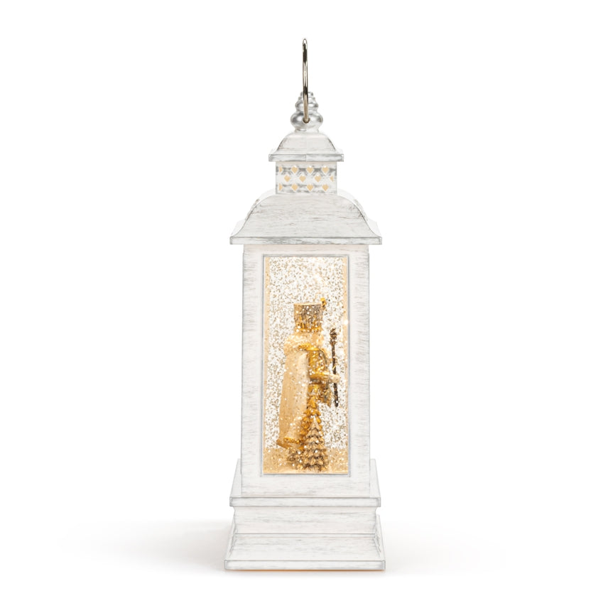 This beautifully crafted lantern features a Nutcracker with Trees design made from resin and acrylic, measuring 6.5 x 10 inches.