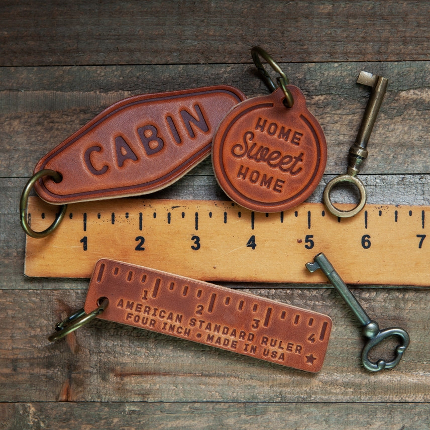 Made from premium harness leather and individually cut and pressed by hand, each keychain develops a rich patina over time, making it truly one-of-a-kind.