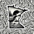 Minnesota State Outline Sticker w/ Loon, Black & White