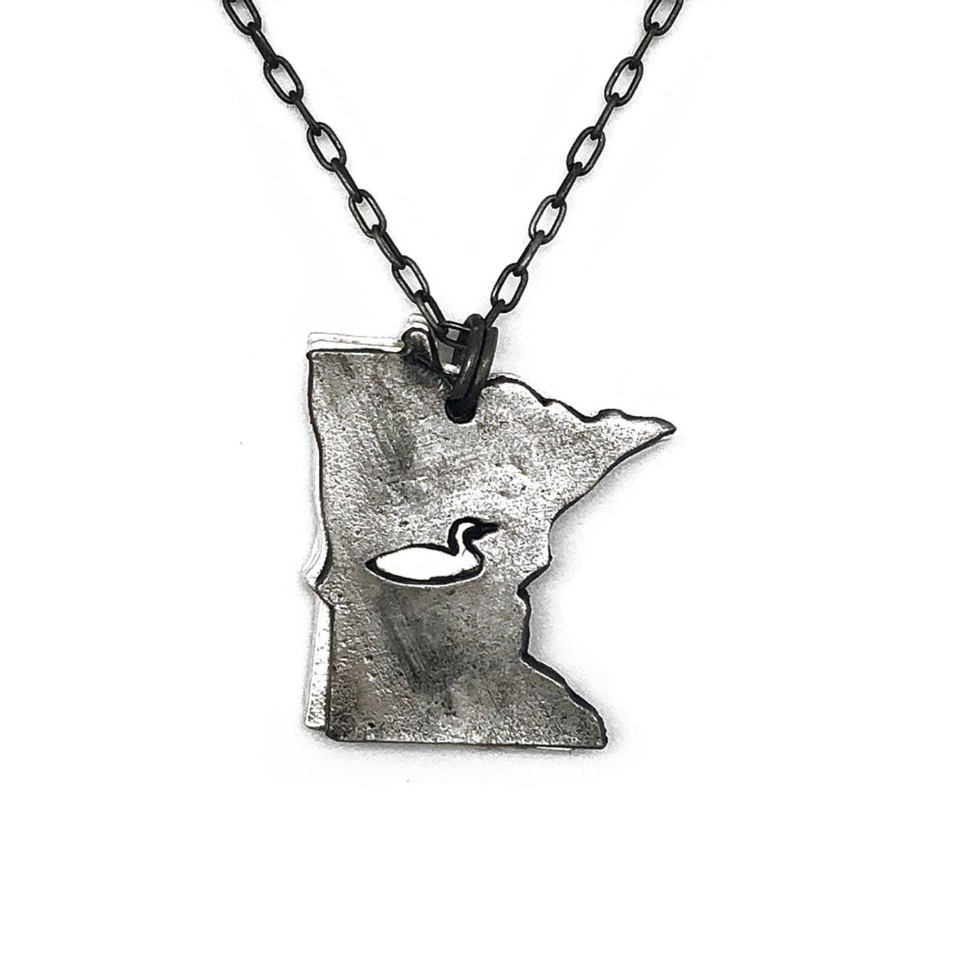 Celebrate your Minnesota pride with this charming pewter necklace featuring the state's iconic loon cutout.