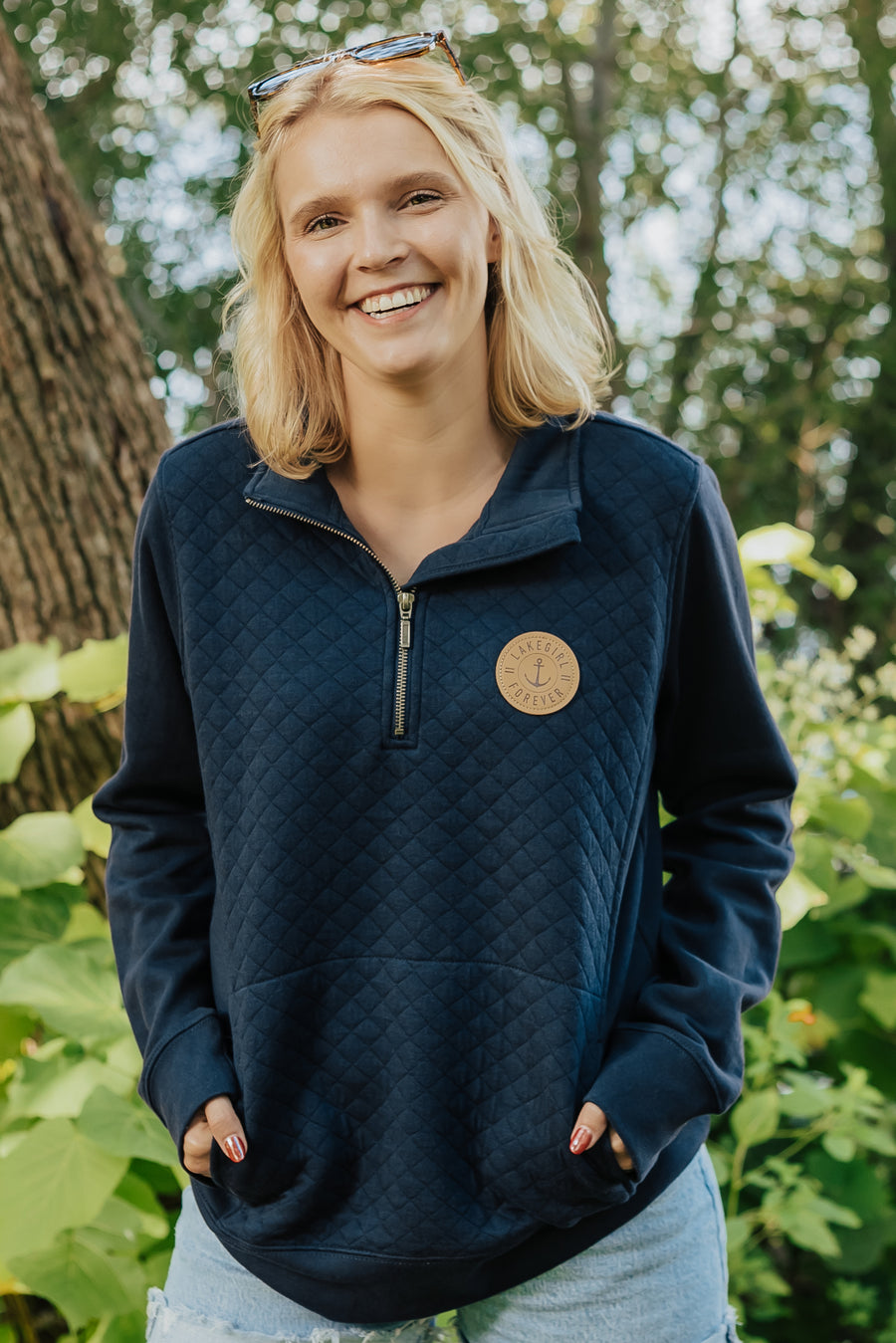 Quilted Fleece Lakegirl 1/4 Zip Pullover, Navy | Lakegirl