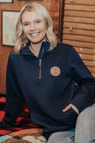 Embrace classic comfort with the Quilted Fleece 1/4 Zip Pullover from Lakegirl in Navy.