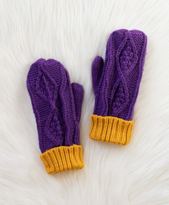 Purple & Gold Knit Mittens | Panache